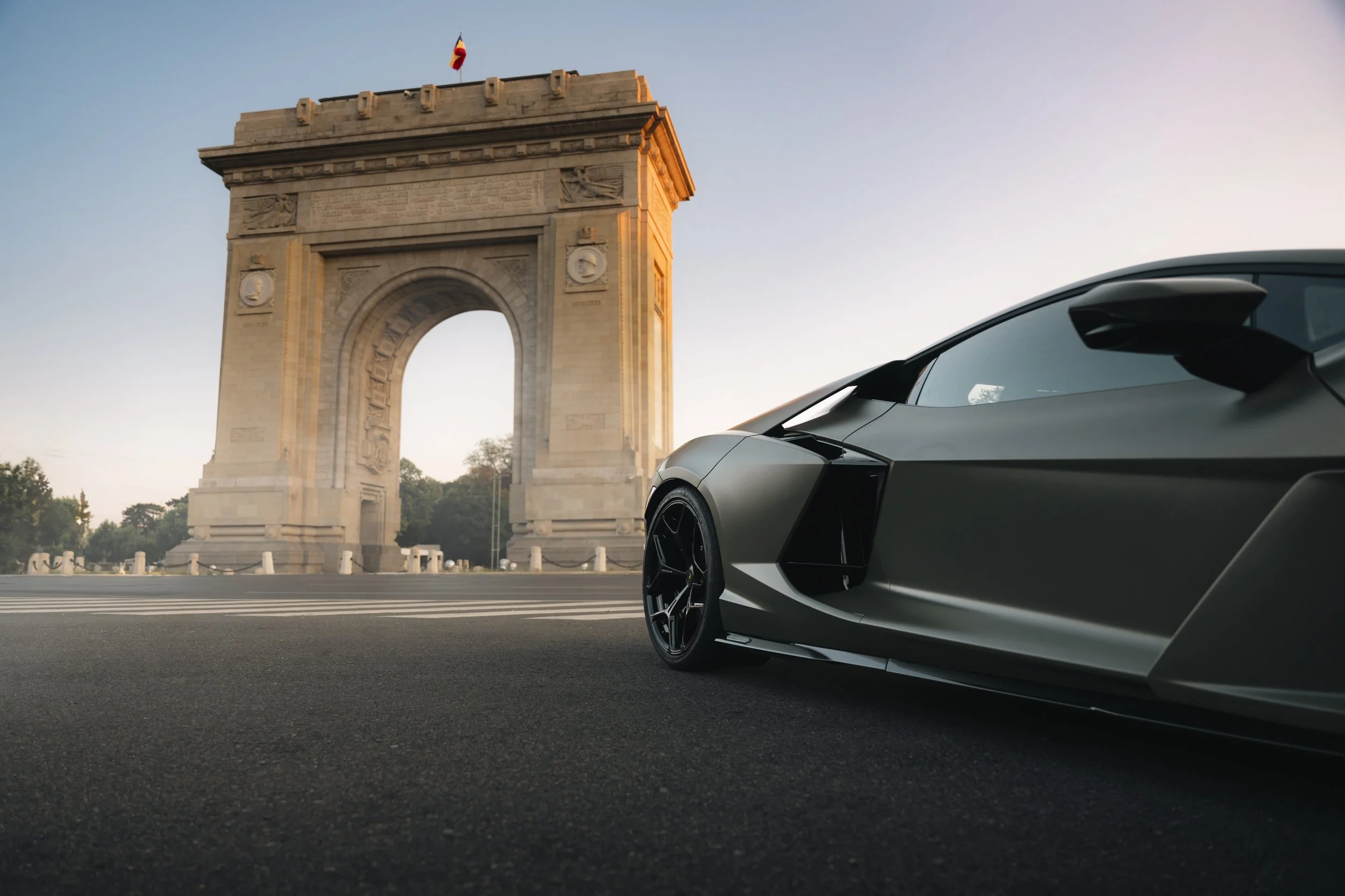 Being entrusted by Lamborghini to photograph the Revuelto for a regional market was both an honor and a challenge. The brief was specific: capture the car in locations that would resonate with the Eastern European audience, emphasizing the connection between Lamborghini’s cutting-edge design and Romania’s rich architectural heritage. The chosen locations—Bucharest’s Arc de Triumf and the House of Parliament—were perfect for this task, offering a blend of historical significance and visual grandeur.